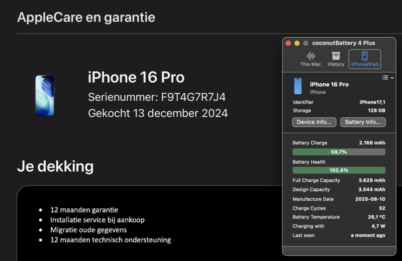 | Uitgevoerde werkzaamheden | Kwaliteit | Applpe notificatie/ apple reparatie assistent |