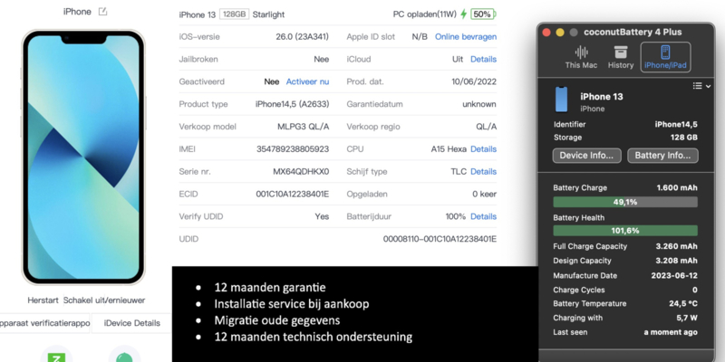 Mijn batterij is niet eerder vervangen maar heeft nog een batterij capaciteit van 96,6%!